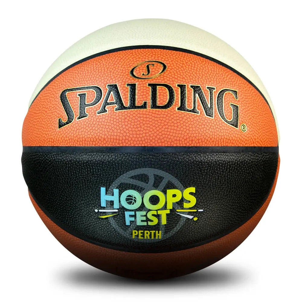 The Inaugural Official HoopsFest Game Ball. Unique to the HoopsFest event and launching for the first time in Perth, the ball features an exclusive colour palette and the official HoopsFest logo in a bright, embossed print. Participating basketball partners; NBL, WNBL and Under 18s are also present on the ball which is sure to stand out on court.